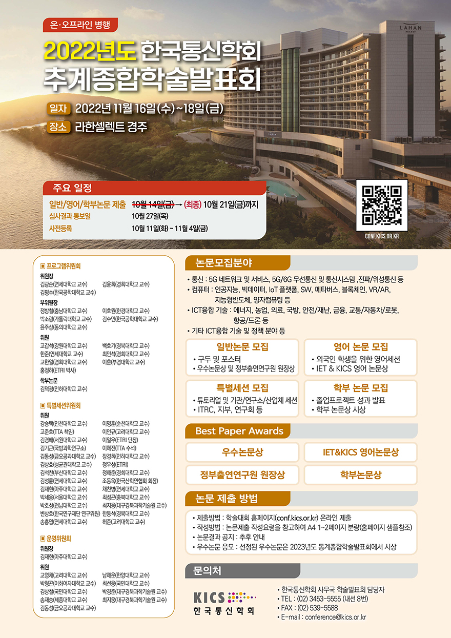 - 포스터세션 : 실시간 오프라인 현장 포스터 발표 (학부논문은 동영상 발표로 대체 : 안내사항 바로가기)