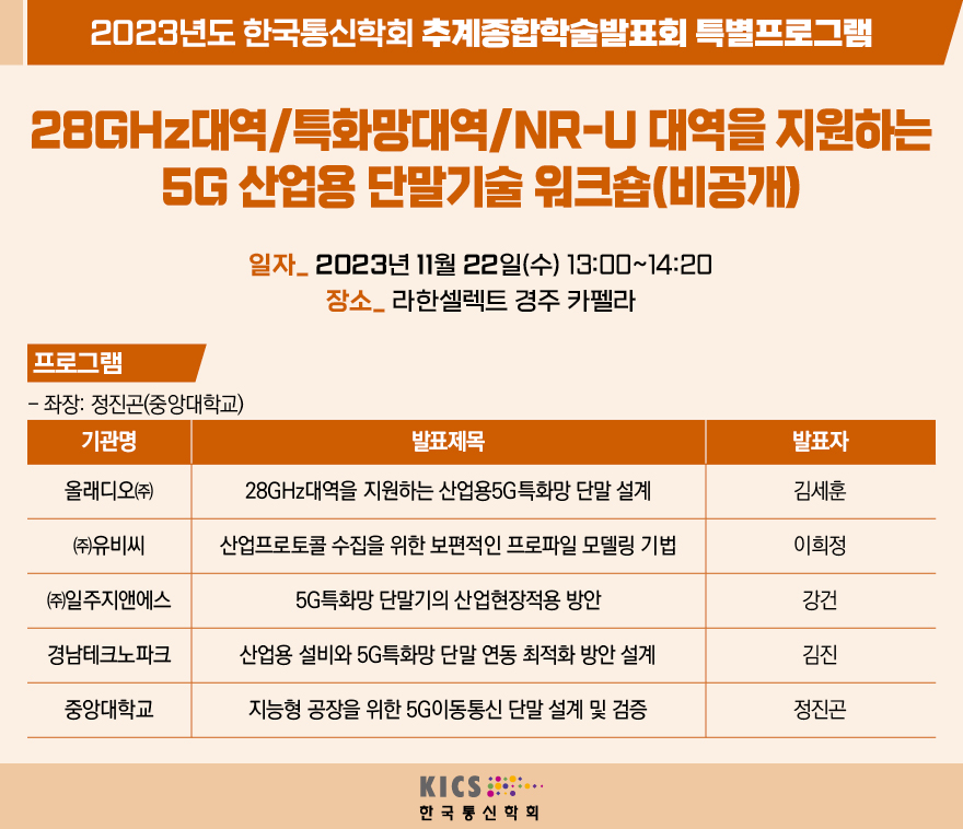 28GHz대역/특화망대역/NR-U 대역을 지원하는 5G 산업용 단말기술 워크숍(비공개)