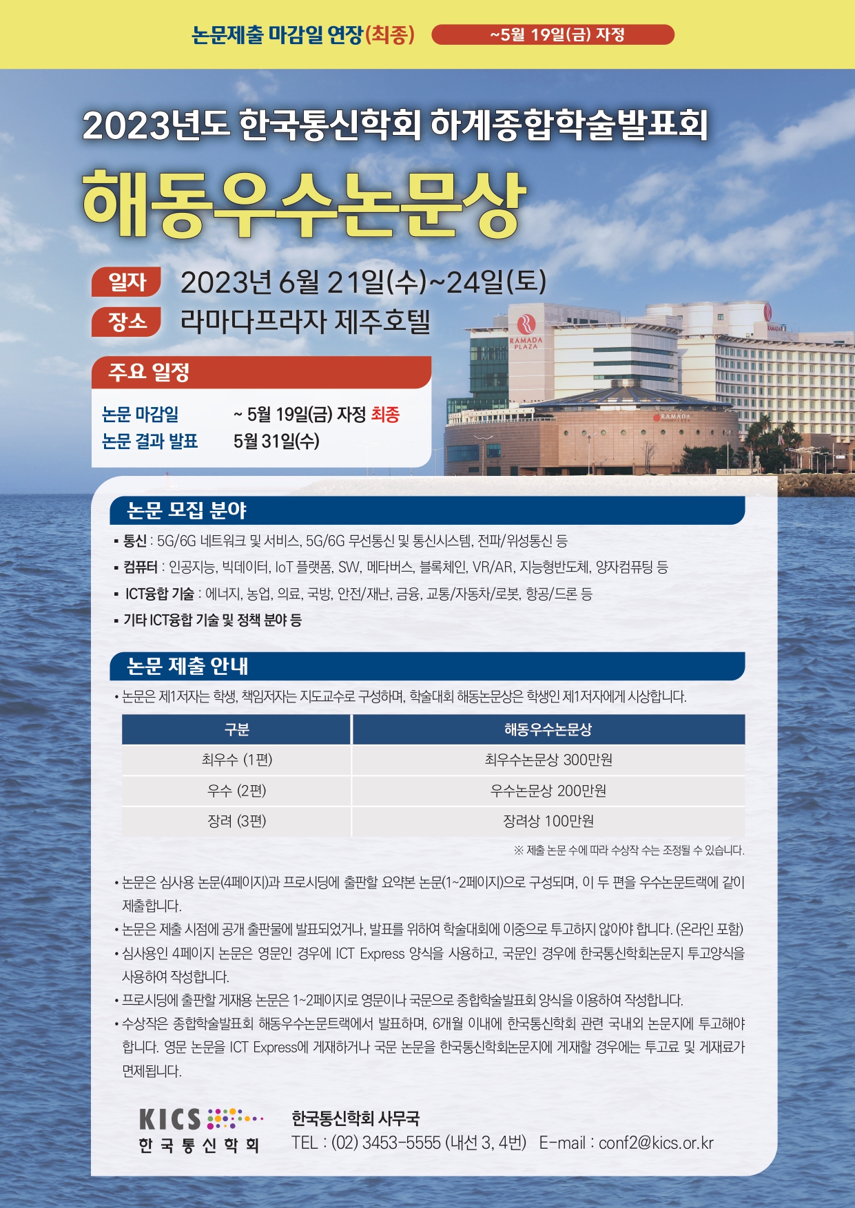 ※ 심사 결과에 따라 지원하신 세션(구두/포스터 발표) 에 배정되지 않을 수 있습니다.