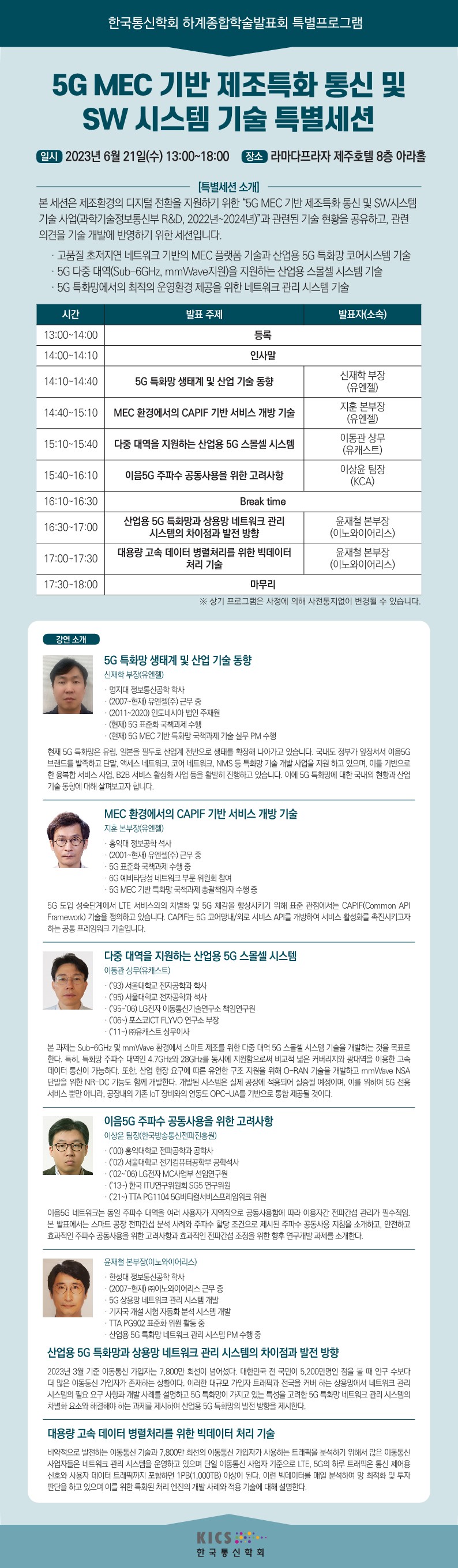 5G MEC 기반 제조특화 통신 및 SW시스템 기술 특별세션