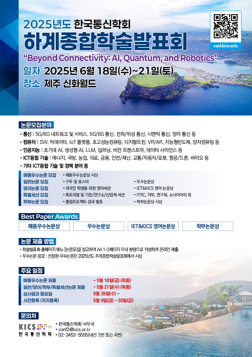 ※ 심사 결과에 따라 지원하신 세션(구두/포스터 발표) 에 배정되지 않을 수 있습니다.