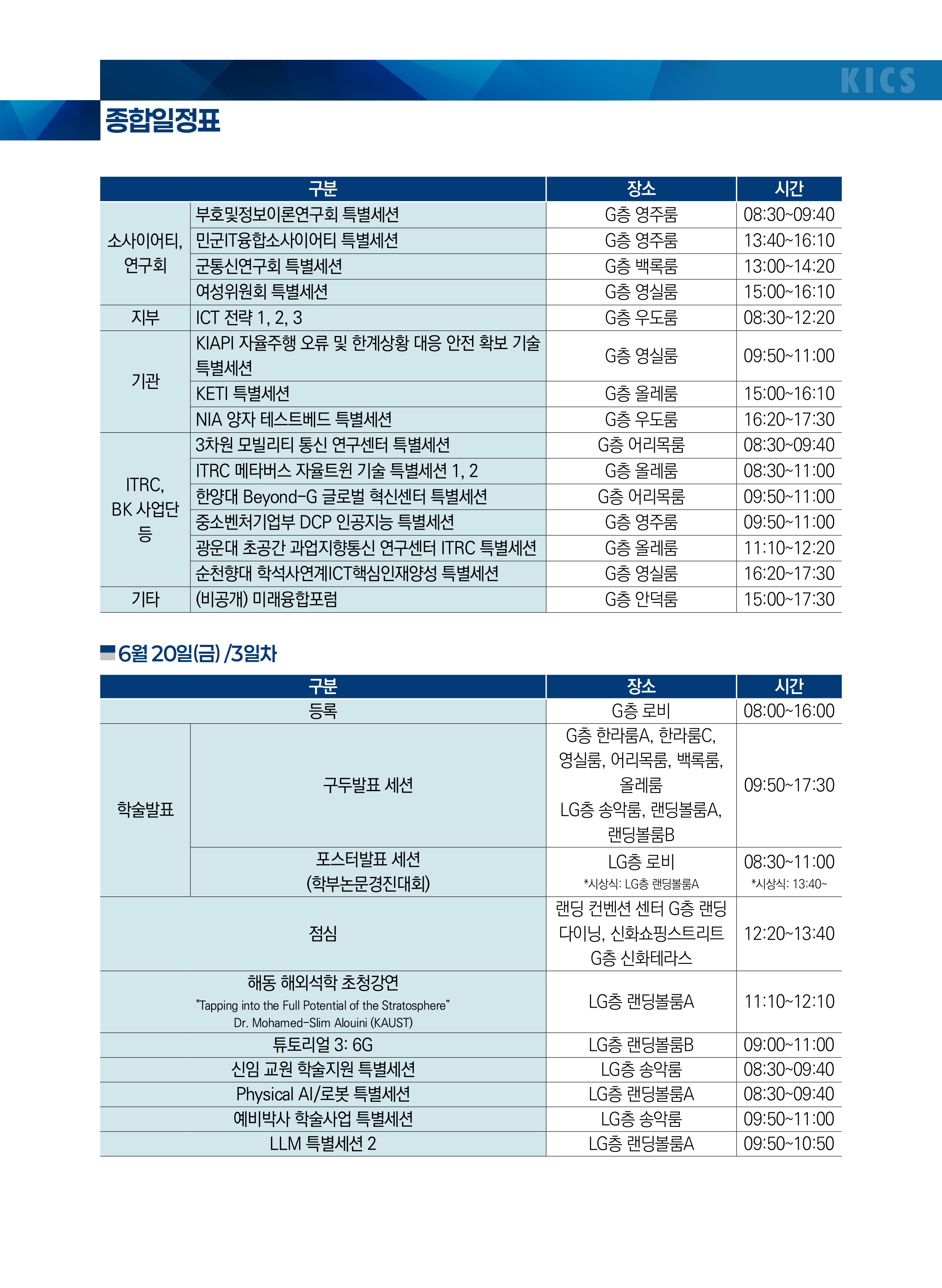 해동석학 초청 강연으로는 KAUST대학의 세계적 석학이신 Mohamed-Slim Alouini 교수님이 직접 참석하셔서 플랫폼 스테이션(HAPS)의 성층권통신을 활용한 초연결통신에 대한 비전을 제시합니다. 그외에도 다수의 세계적인 연구자들의 강연을 준비했습니다.
