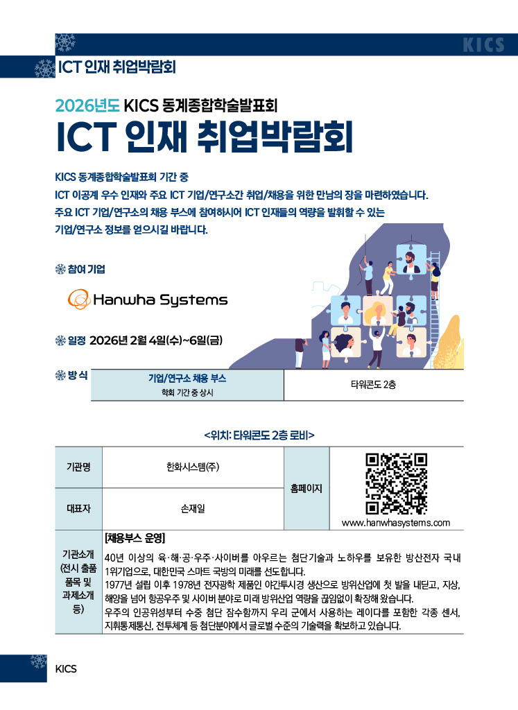 · 일정: 2026년 2월 4일(수)~6일(금), 학회 기간 중 상시