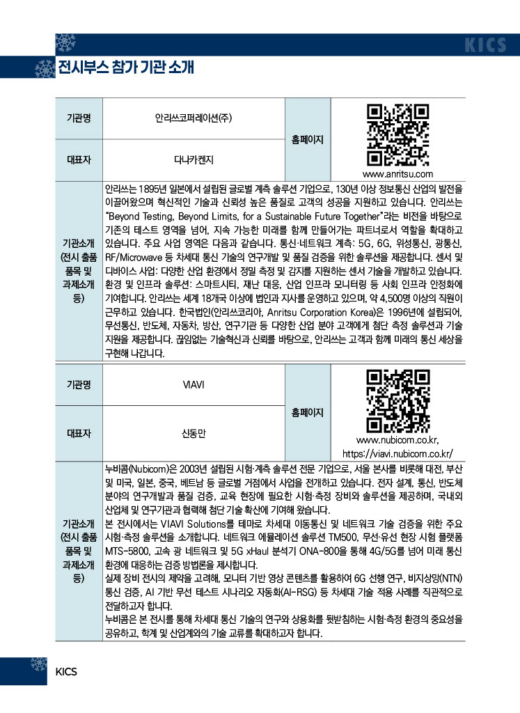 전시부스 - (주)누비콤, AP위성(주), 안리쓰코퍼레이션(주), VIAVI