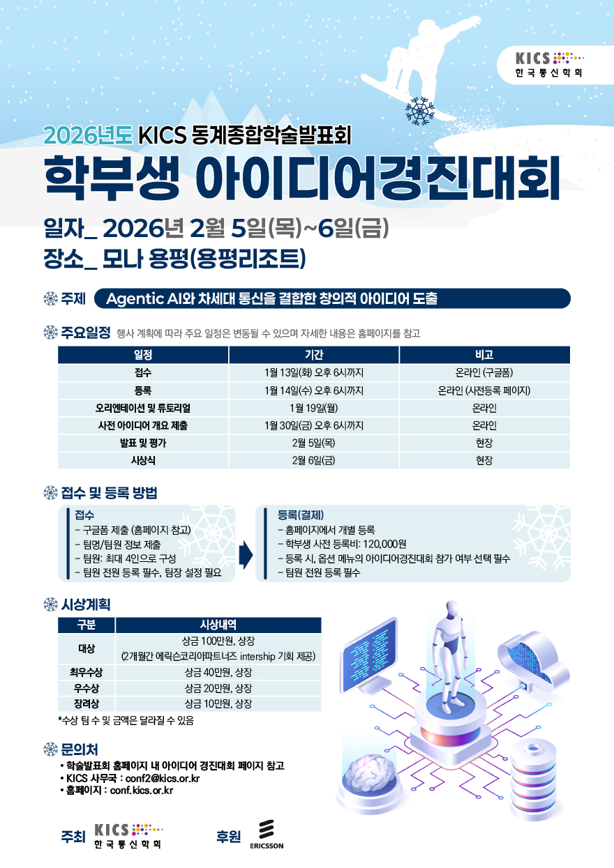 - 접수 및 등록 후 결과물 제출한 모든 팀에게 이수증 및 학회 세션 참석 기회 제공